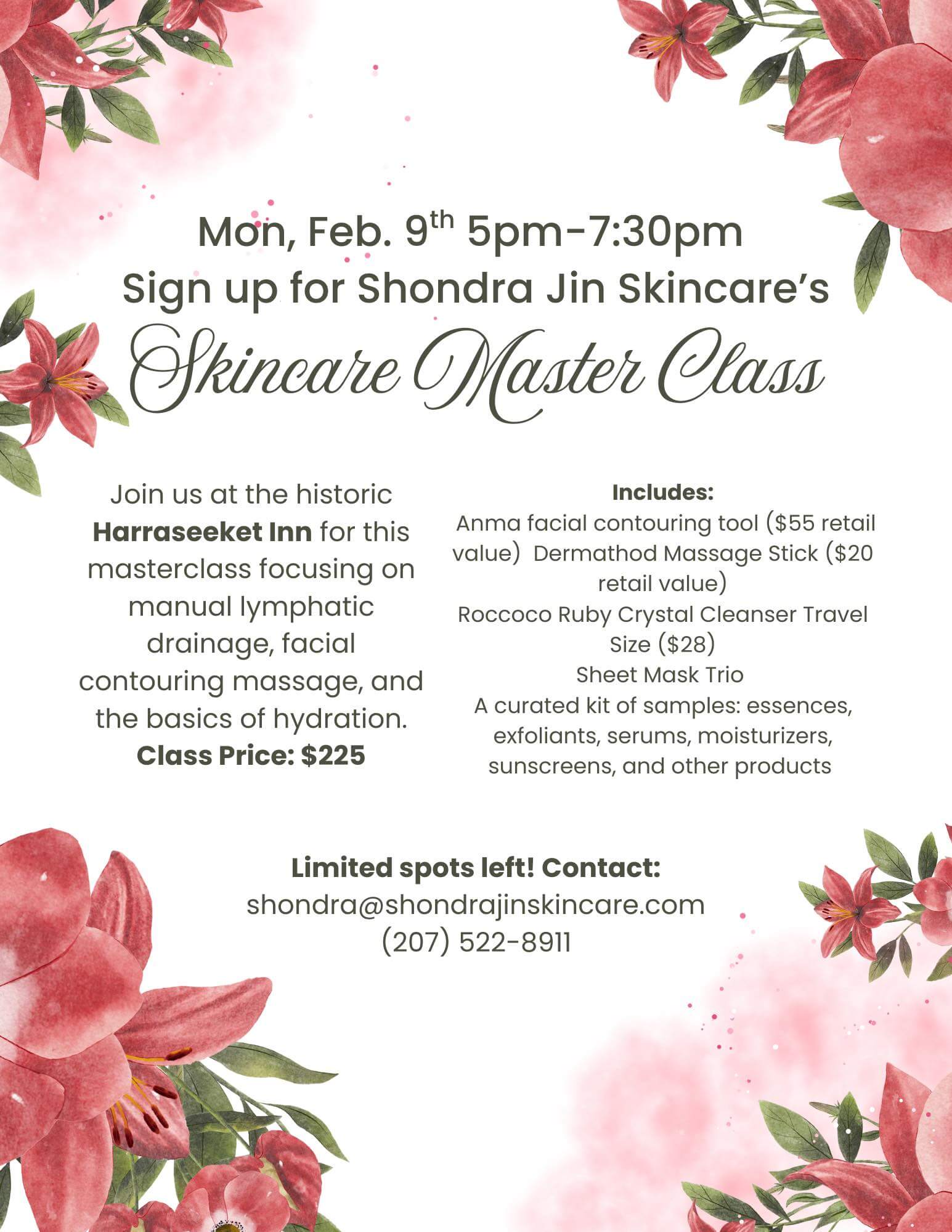 Join me at the historic Harraseeket Inn for this masterclass focusing on manual lymphatic drainage, facial contouring massage, and the basics of hydration.