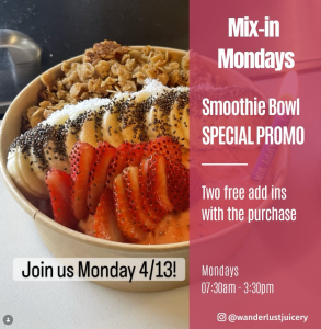 Two free add-ins with the purchase Mondays, 7:30am-3:30pm!