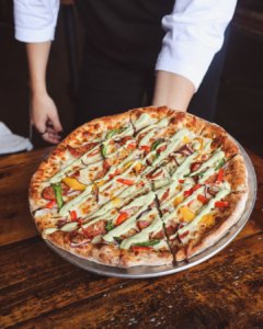 Don’t forget, our special fall pizza features Portuguese chouriço, bell peppers, onions, Manchego cheese, avocado crème, and red sauce—and for every one sold, $1 goes to United Way of Southern Maine.