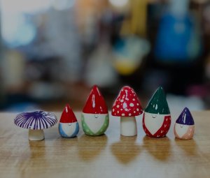 Tiny ceramic gnomes and mushrooms by @katedotmartens are back in stock and are as cute as ever!