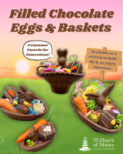 Only in stores…filled chocolate eggs & baskets!