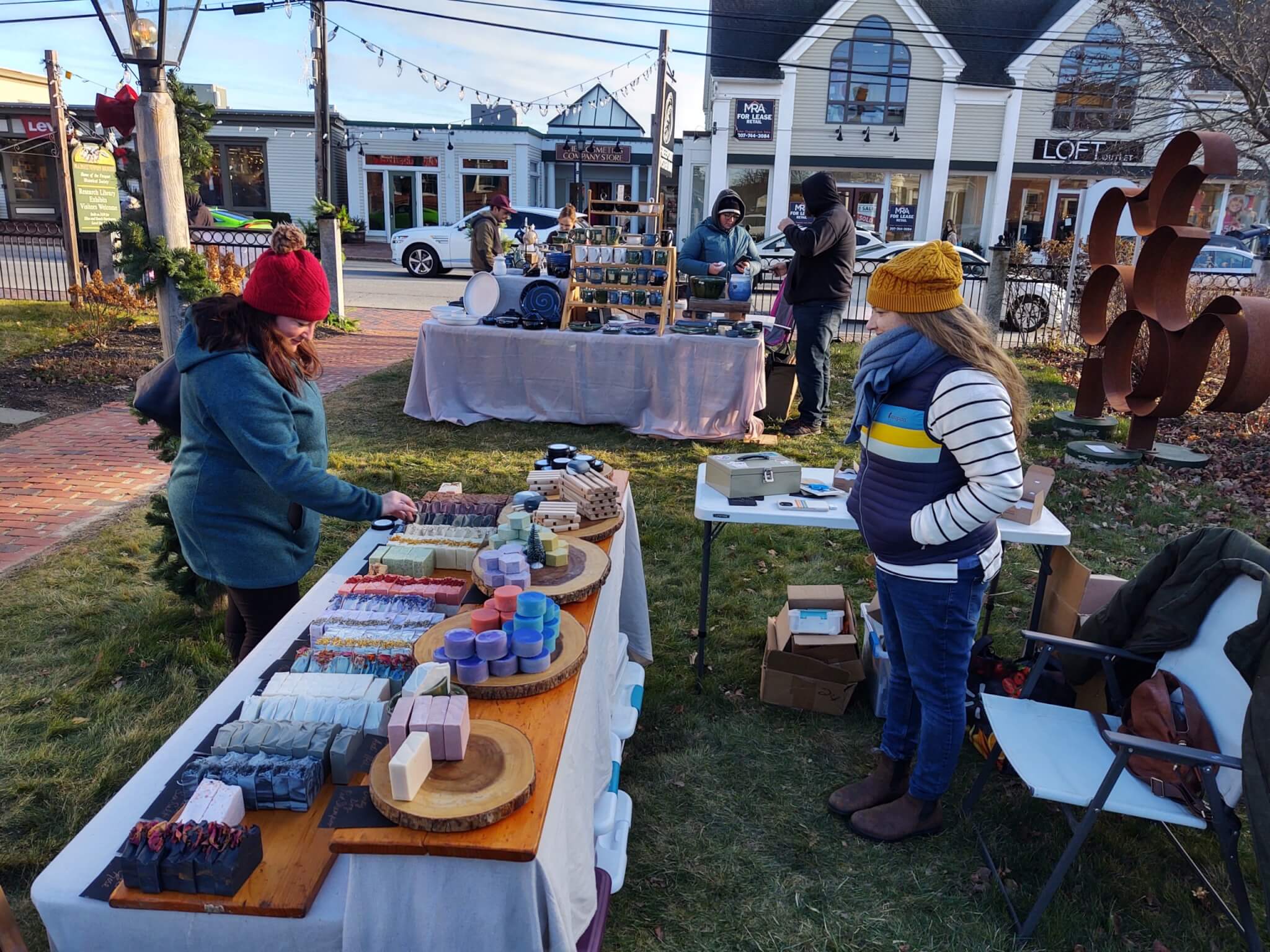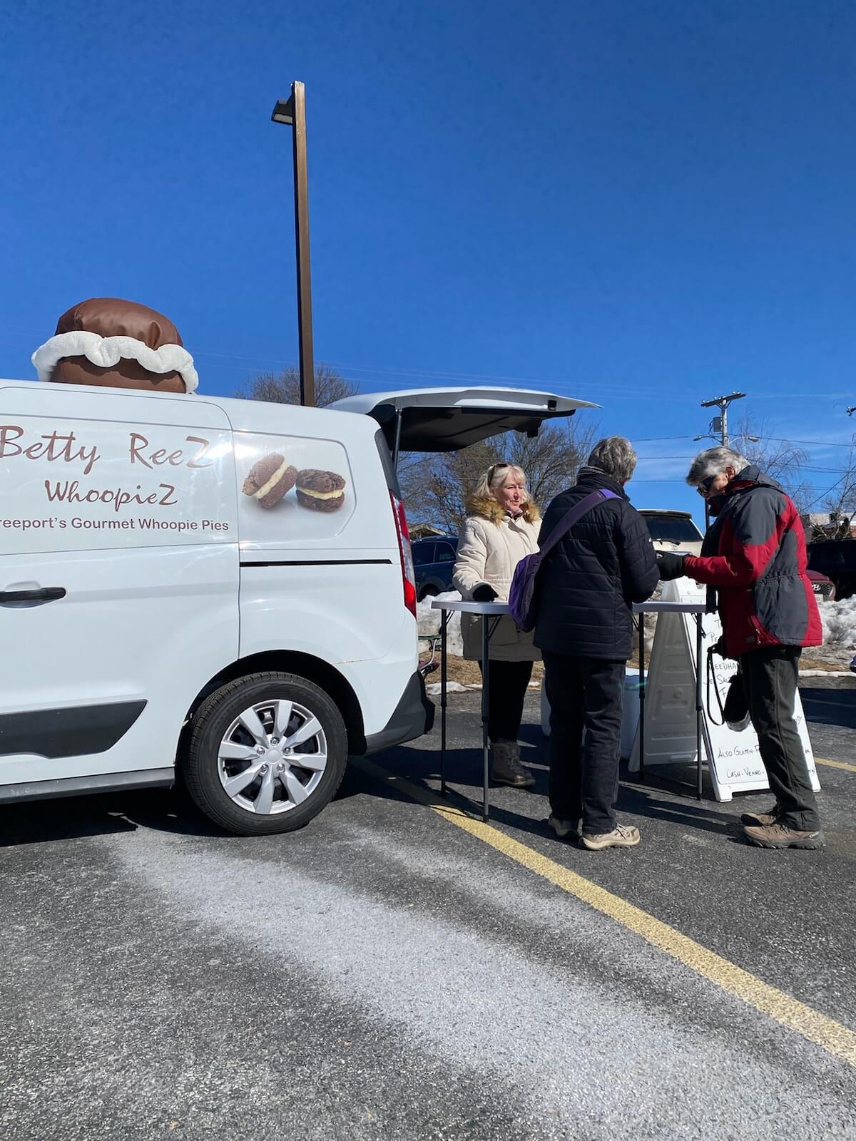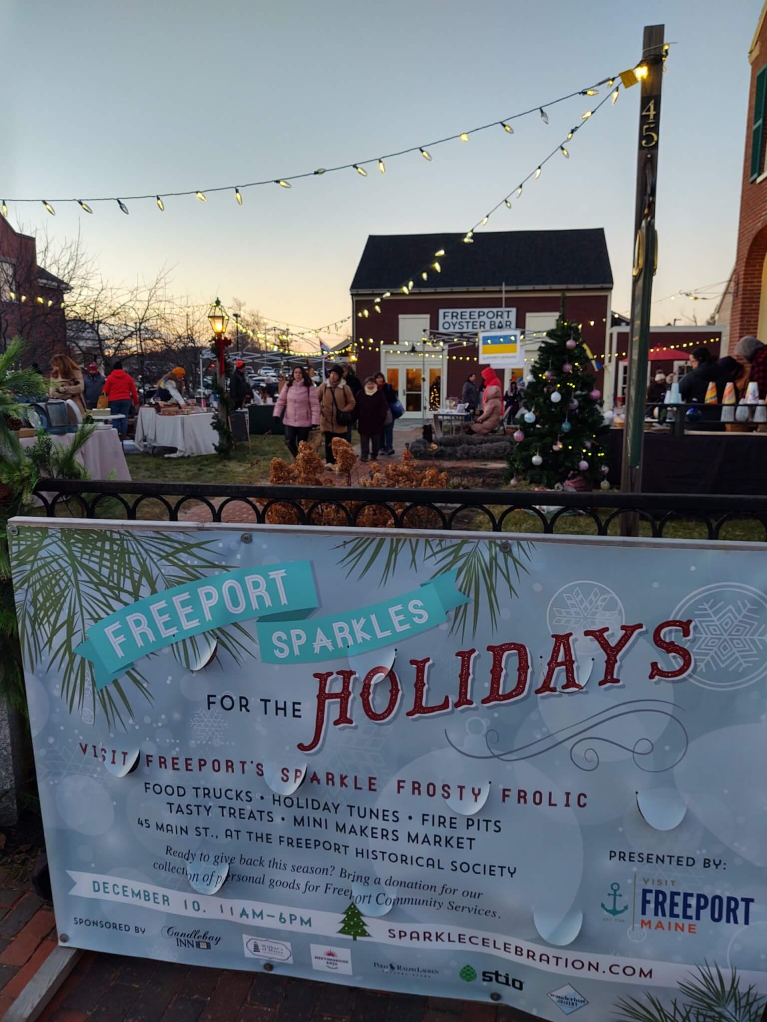 In the Freeport Historical Society courtyard, on the patio at the Lobster Cooker & in the parking lot at MADE