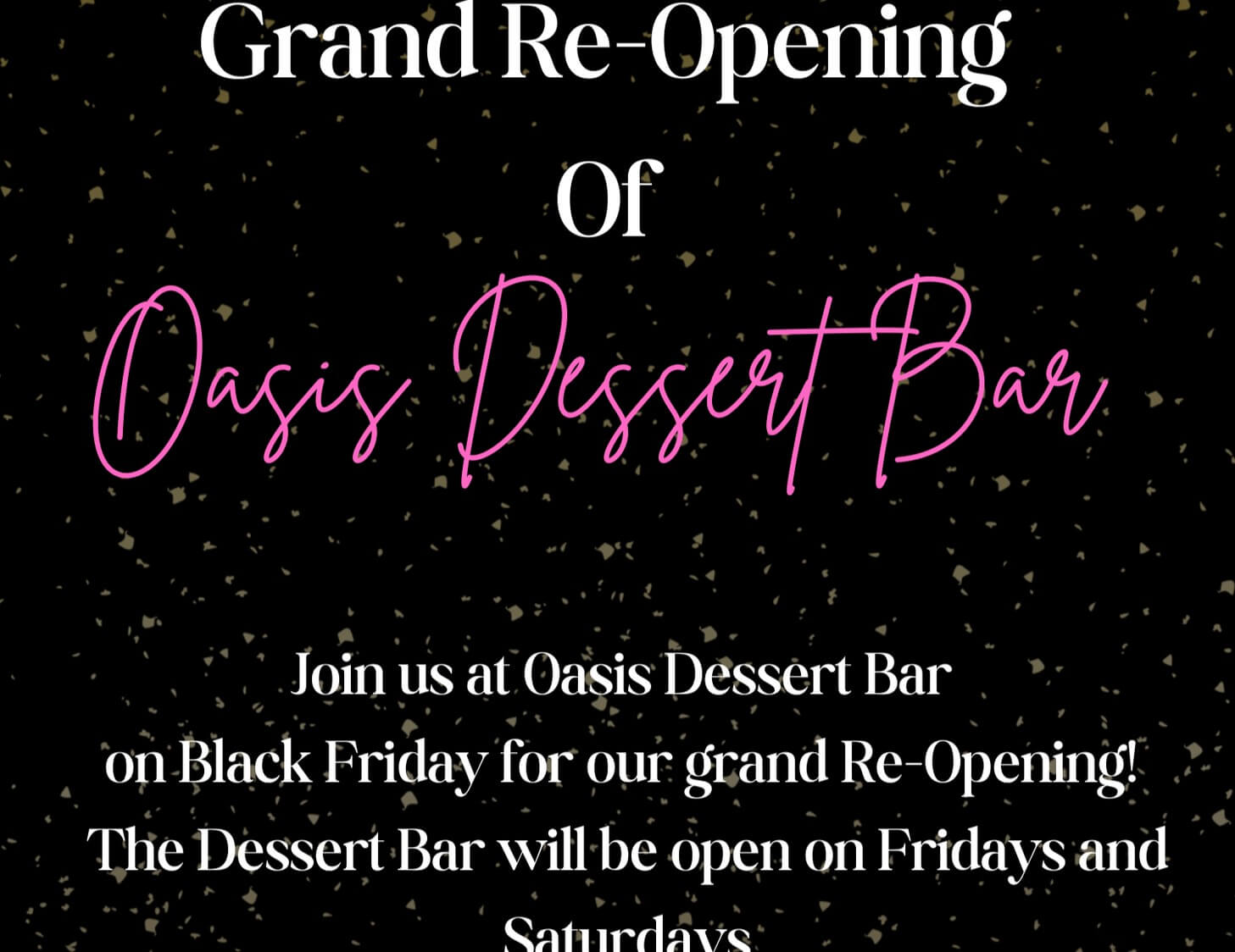 Join us at Oasis Dessert Bar on Black Friday for our Grand Re-Opening!