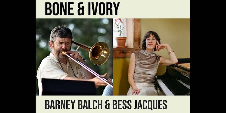 Pianist/vocalist Bess Jacques and trombonist Barney Balch join forces in their new jazz duo collaboration, Bone & Ivory