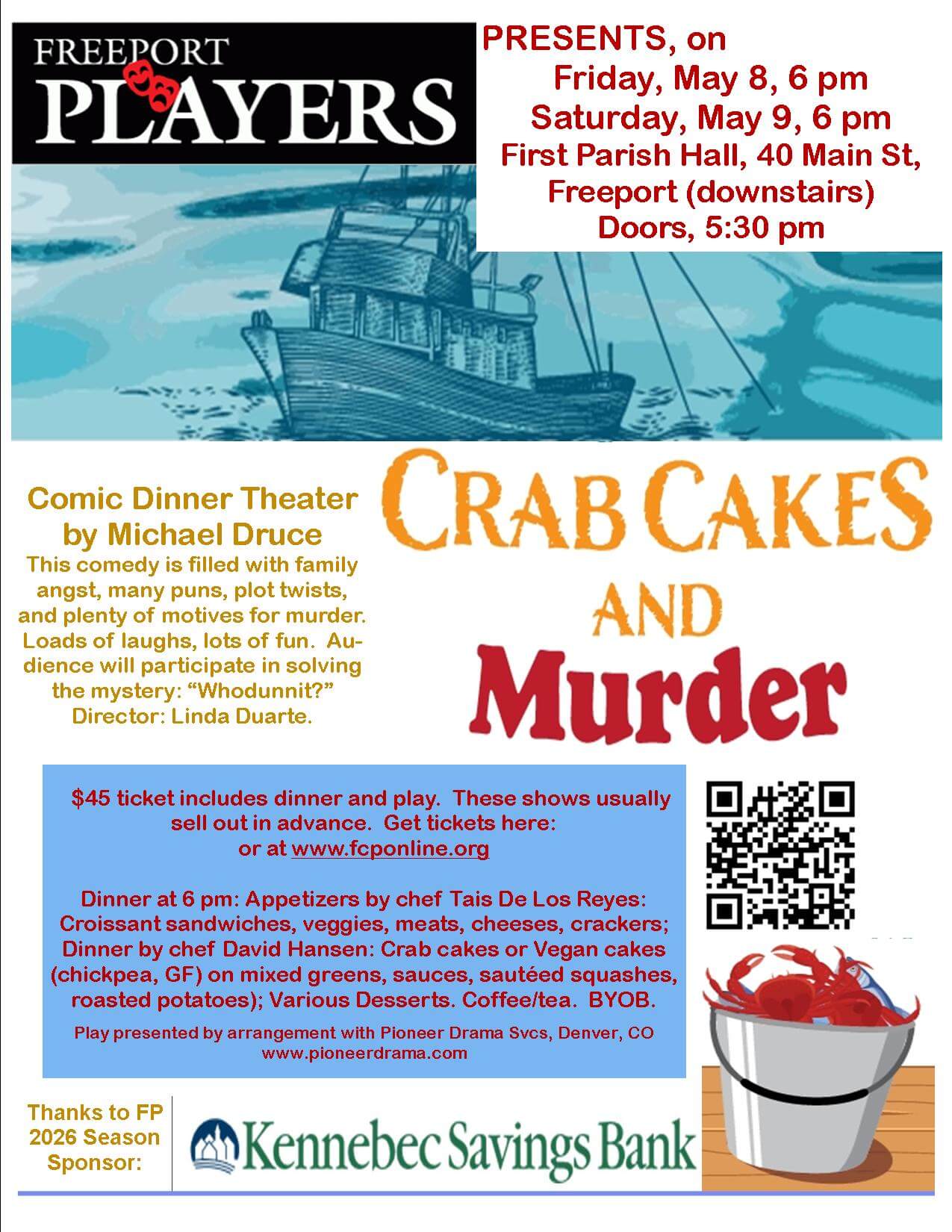 Crab Cakes and Murder, by Michael Druce, is a fun dinner theater experience presented by Freeport Players on Friday and Saturday, May 8 and 9,…