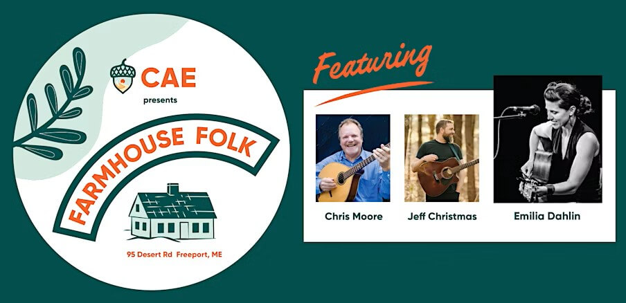 Farmhouse Folk with Chris Moore, Jeff Christmas, and Emilia Dahlin. A folk-infused singer-songwriter concert at the historic Desert of Maine Farmhouse Ticket information HERE Desert…