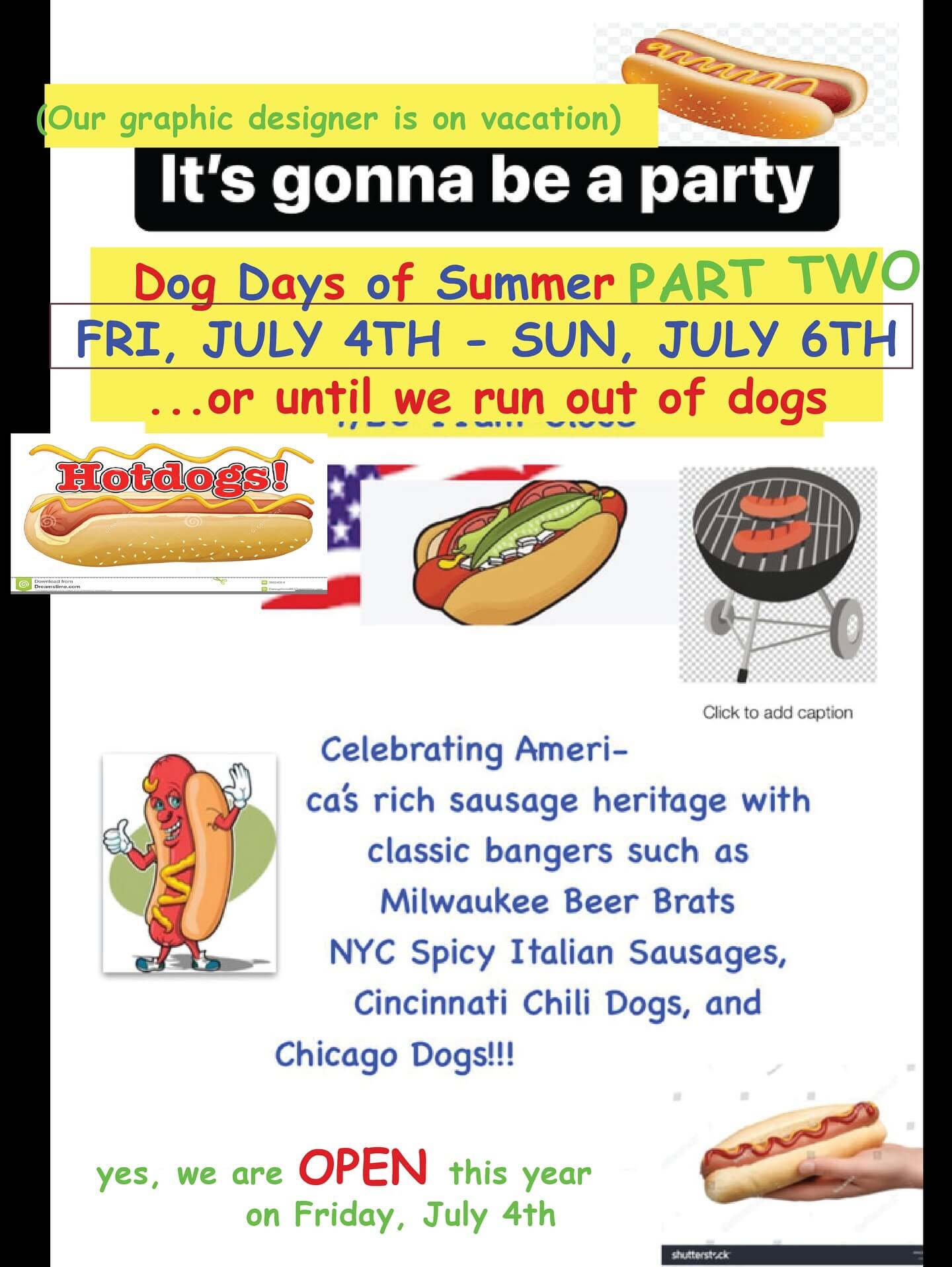 Starting Friday, July 4th (yes we are open!) Serving up regional sausage specialties to celebrate America’s RICH hot dog heritage // ALL WEEKEND until we…