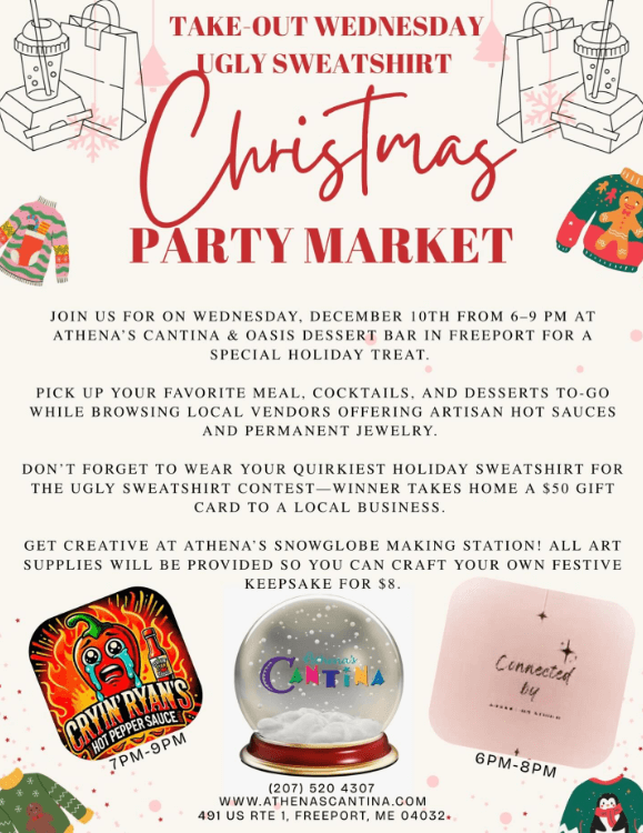 Join us at Athena’s Cantina & Oasis Dessert Bar in Freeport for a special holiday treat. Pick up your favorite tacos, cocktails, and desserts while…