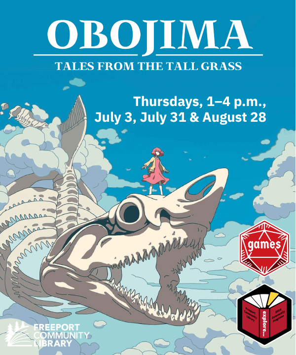 Join us at Freeport Community Library this summer for three sessions of Dungeons & Dragons, exploring the world of Obojima, a setting inspired by Studio Ghibli films and The Legend of Zelda. New players are always welcome! Grades 5+