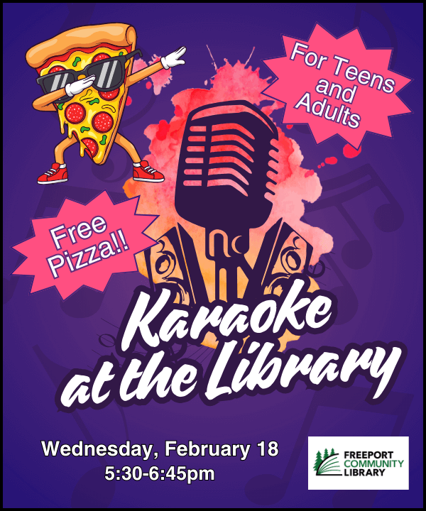 Warm up your pipes and get ready to belt out your favorite tunes—Freeport Community Library is hosting a karaoke party on Wednesday, February 18 from 5:30-6:45pm!