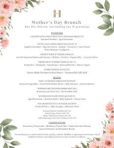 Treat your Mom to a special Mother’s Day Brunch at The Harraseeket Inn! Our special brunch menu by Executive Chef Jeremy Lamoureux features an array classic brunch dishes to mom’s favorites perfect for celebrating.