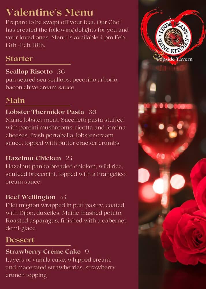 Linda Bean’s Maine Kitchen & Topside Tavern – Valentine’s Menu