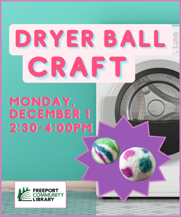 Join us at Freeport Community Library to learn how to make eco-friendly wool dryer balls in this hands-on craft! Participants will go home with a…