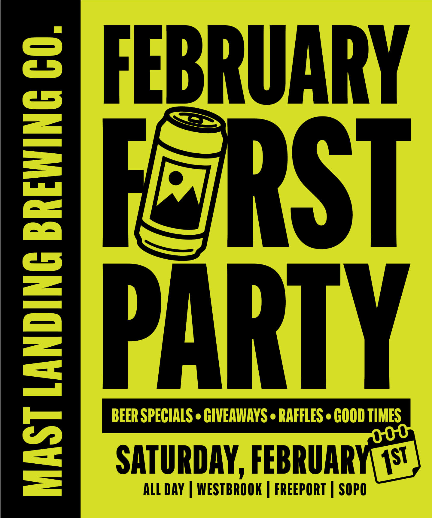 Head to any Mast Landing taproom celebrate one of the top 12 months of the year, FEBRUARY! We’ll have beer specials, giveaways, raffles and all around good vibes open to close as we enter the second month of 2025. Stay tuned for details, we might have a few more things to celebrate on 2/1!