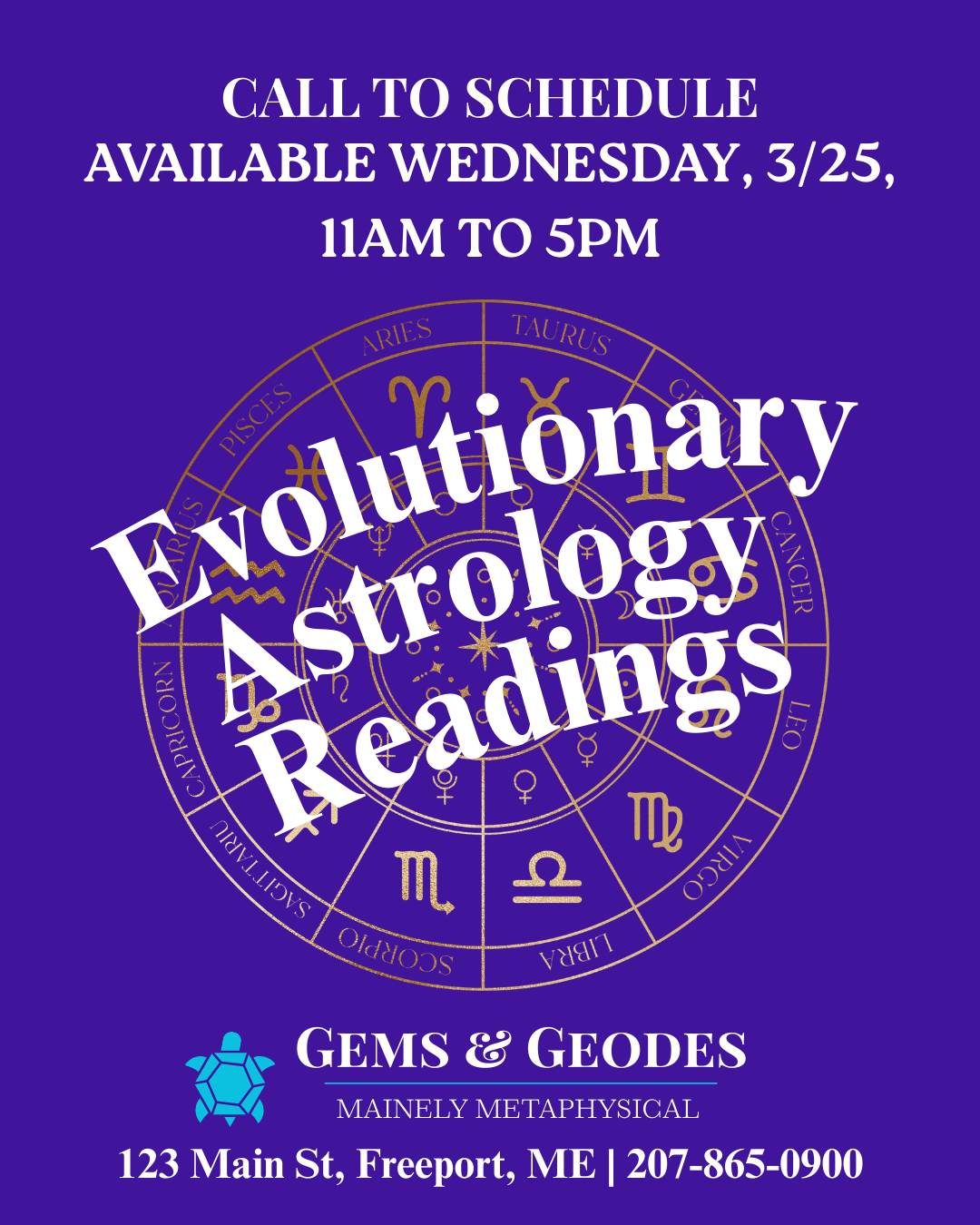 Evolutionary Astrology Readings are available at Gems & Geodes on Wednesday, March 25th, from 11am-5pm. Our reader, Robert, is an evolutionary astrologer living here in…