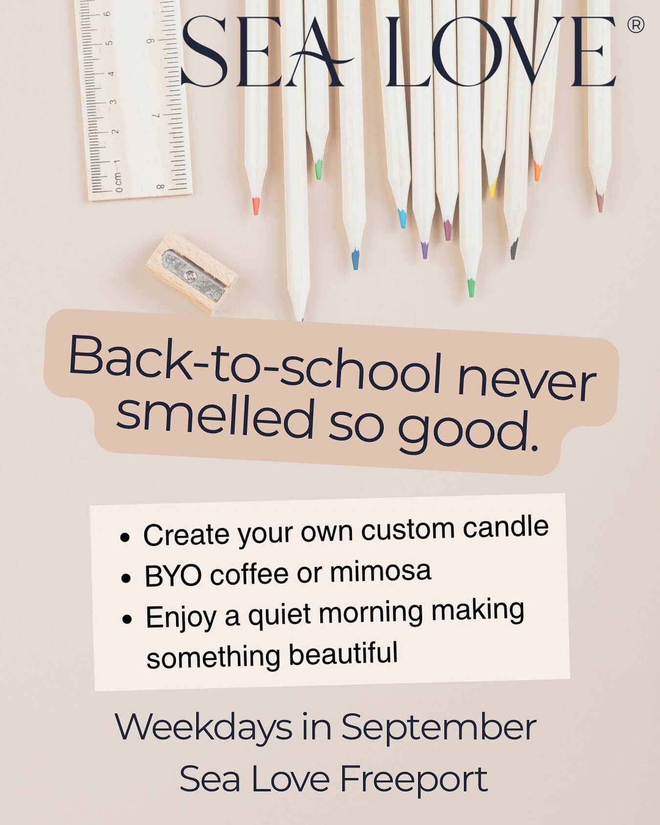 Drop the kids off at school, grab a coffee (or mimosa), then come by Sea Love Freeport for a Parents’ Day Out Scent-Blending Experience.
