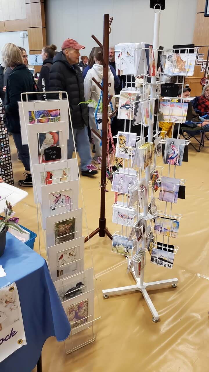 I sell my watercolor art work. I have orginals, prints, and cards. As well as gift items with my images on them; notebooks, bookmarks, coasters, stickers, ornaments, key chains, luggage tags, calendars, magnets. I also have a few diamonds paints I have created and made homemade frames for. Social: https://www.facebook.com/profile.php?id=61557673975379&mibextid=ZbWKwL Makers on Main 2025 Dates: September 6, 2025 Location: 22 Main