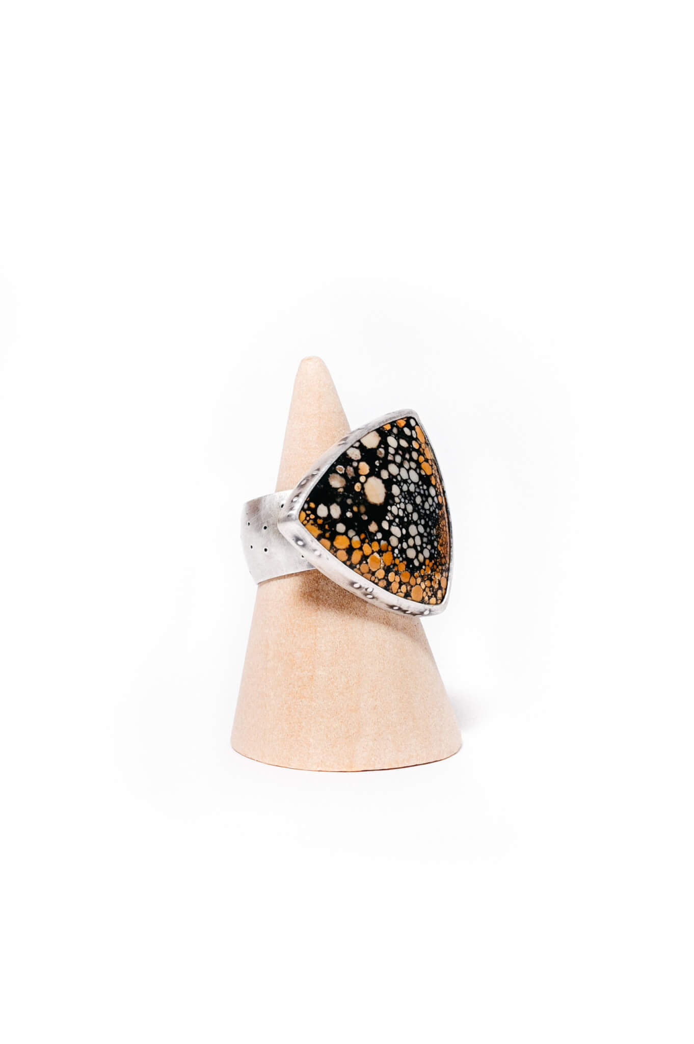 Zoe uses recycled precious metals and unique stones. Many of her hand fabricated pieces use interesting textures and many of her designs play off the world around her. Her inspirations come from a lifetime of observation and travel.