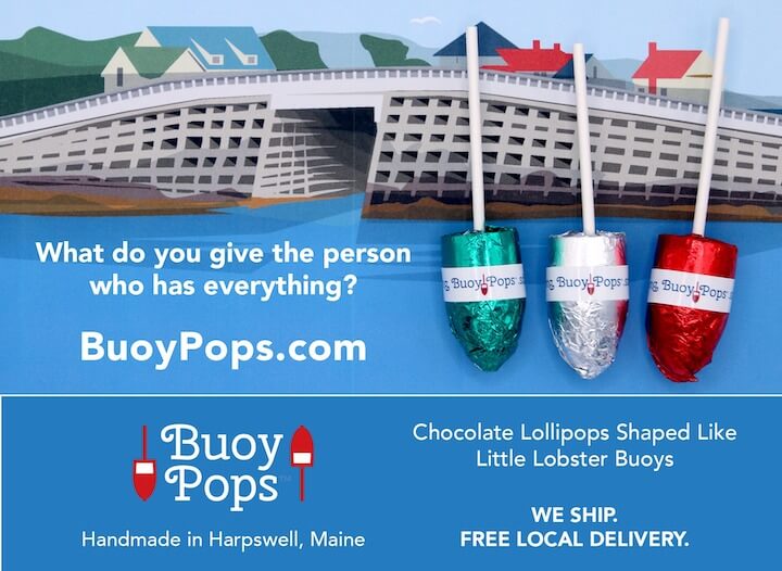 Buoy Pops makes little chocolate lollipops shaped like lobster buoys. Started last year in Harpswell, our decadent 100% Belgian chocolate pops have been a big hit and we have increased production to meet the demand. This summer we will be available in select shops up and down the Maine coast, as well as on our online store. Buoy Pops are the perfect way to celebrate the joy and heritage of the Maine coast.
