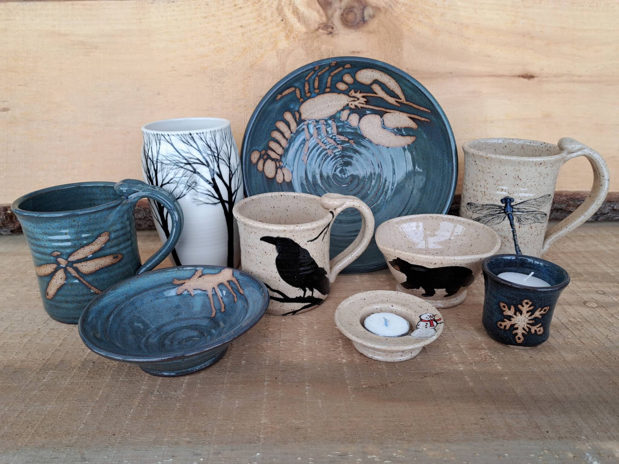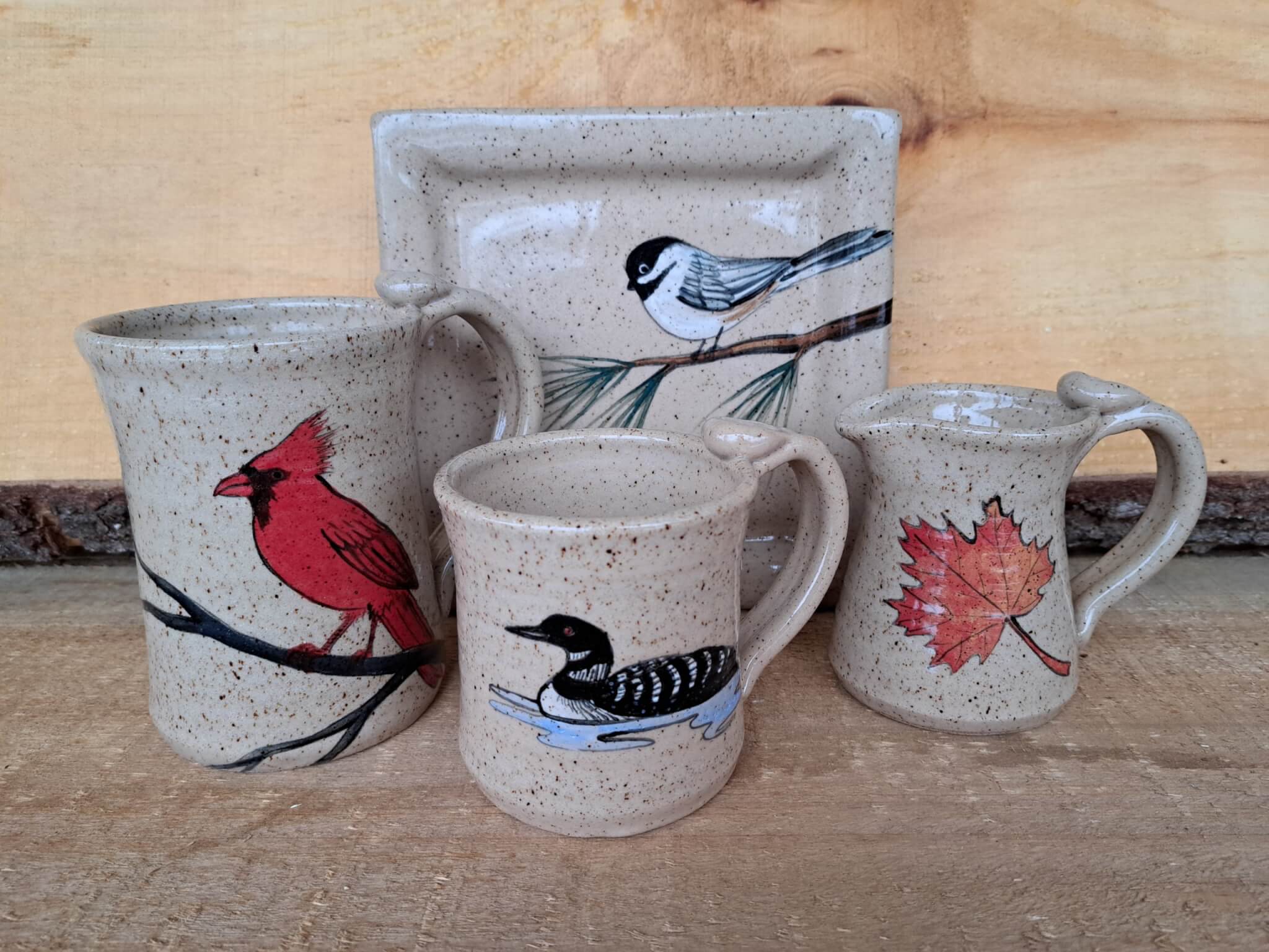 My business, Cabin Pottery is located in the Western Mountain region of Maine. My pottery is inspired by the natural beauty of Maine including its animals, birds, dragonflies and landscapes. Each piece is unique and hand created and hand painted and glazed. These one-of-a-kind pieces are fully functional for daily use or one-of-a-kind pieces to pass down from generation to generation.