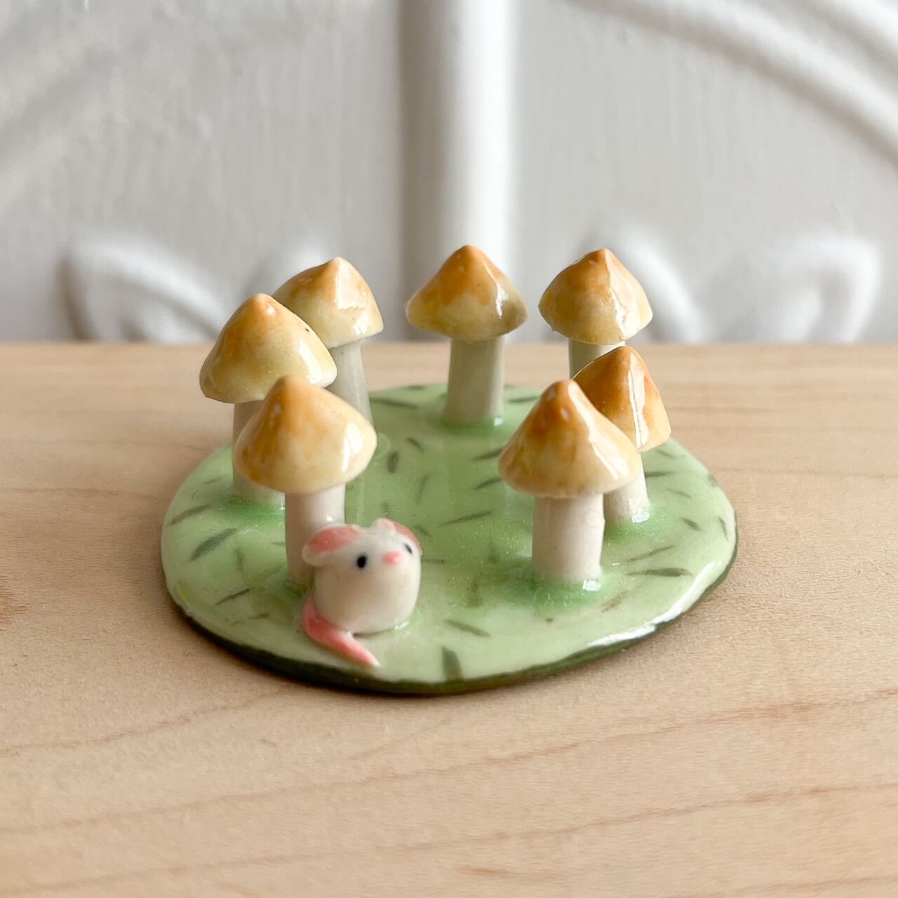 Clay can be anything, giving life to memories, stories and dreams. My bright, whimsical ceramic work is inspired by a childhood spent being fascinated by creatures of all kinds, being dubbed “The Candy Queen,” devouring myths/legends/folklore and building amusing narratives. As a maker I want to make people of all ages smile, wonder, imagine and enjoy the magic of my creations. Materials I use are a combination of purchased and personally developed casting slip, clay and glazes. Pieces are made with hand building and slip casting techniques using mid-range porcelain clay bodies. Designs are original and everything is sculpted, created, hand painted and glazed by me. Work that I’ll be selling: Magnets, Ornaments, Figurines, Earrings, Kitchen and Home goods(mugs, coin banks, dog bowls, jewelry trees, butter dishes, etc.). Social: https://www.instagram.com/emdiaznorton/ or https://www.facebook.com/EmilyNCeramics/