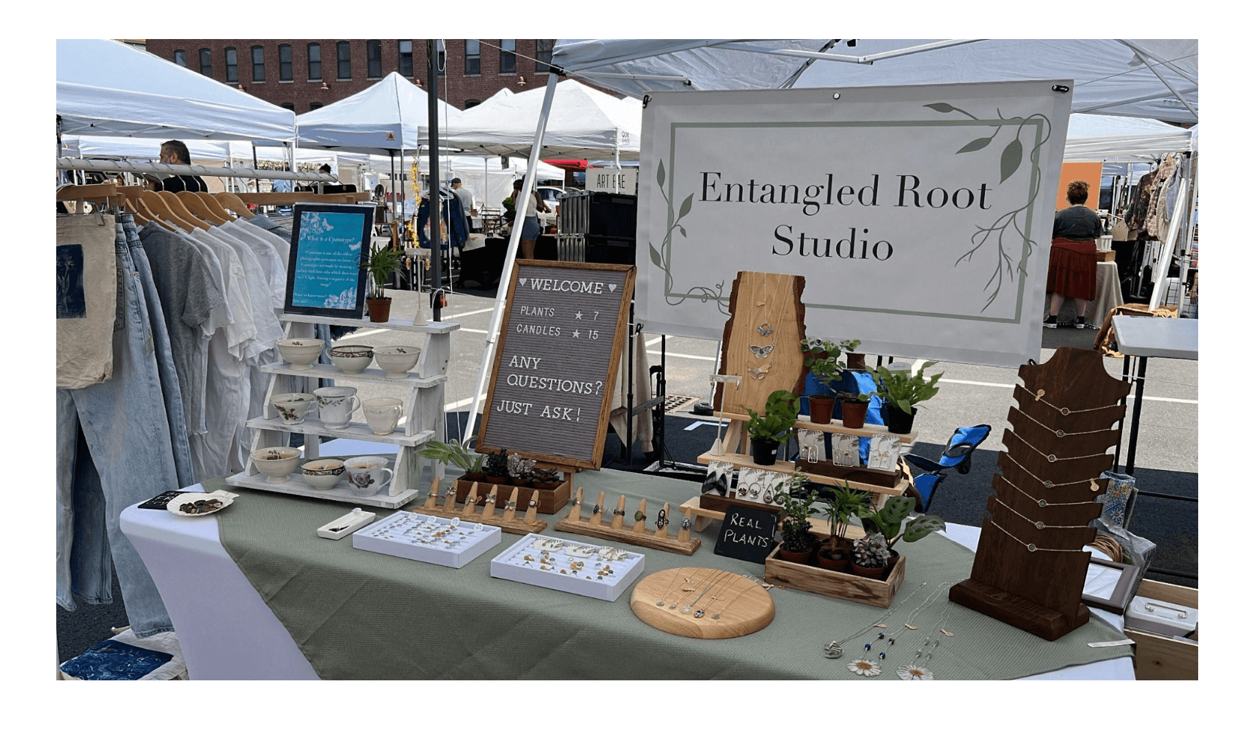 Founded in 2020 in the dense woods of Vermont, Entangled Root Studio connects people to nature through wearables, workshops, and research. When I started making jewelry, I wanted to connect my customers to the natural world by creating pieces that hold a trace of nature’s fingerprint; may that be by preserving plants in resin or replicating them in silver. My jewelry ranges from preserved mushrooms to forged gemstone jewelry, but the underlying tie is always about connection. I loves creating and sharing my passions with likeminded people and would love to connect with your community! Social: https://www.instagram.com/entangledrootstudio Website: https://entangledrootstudio.com/ Makers on Main 2025 Dates: June 7, 2025 August 2, 2025 September 6, 2025 Location: 115 Main