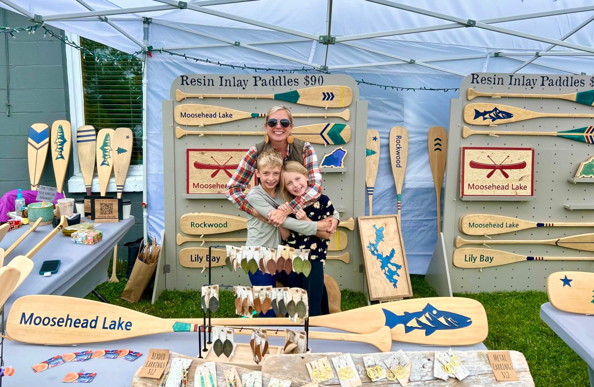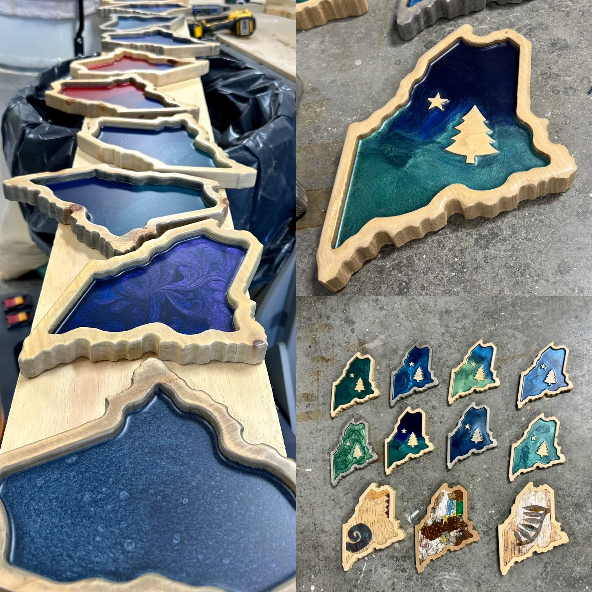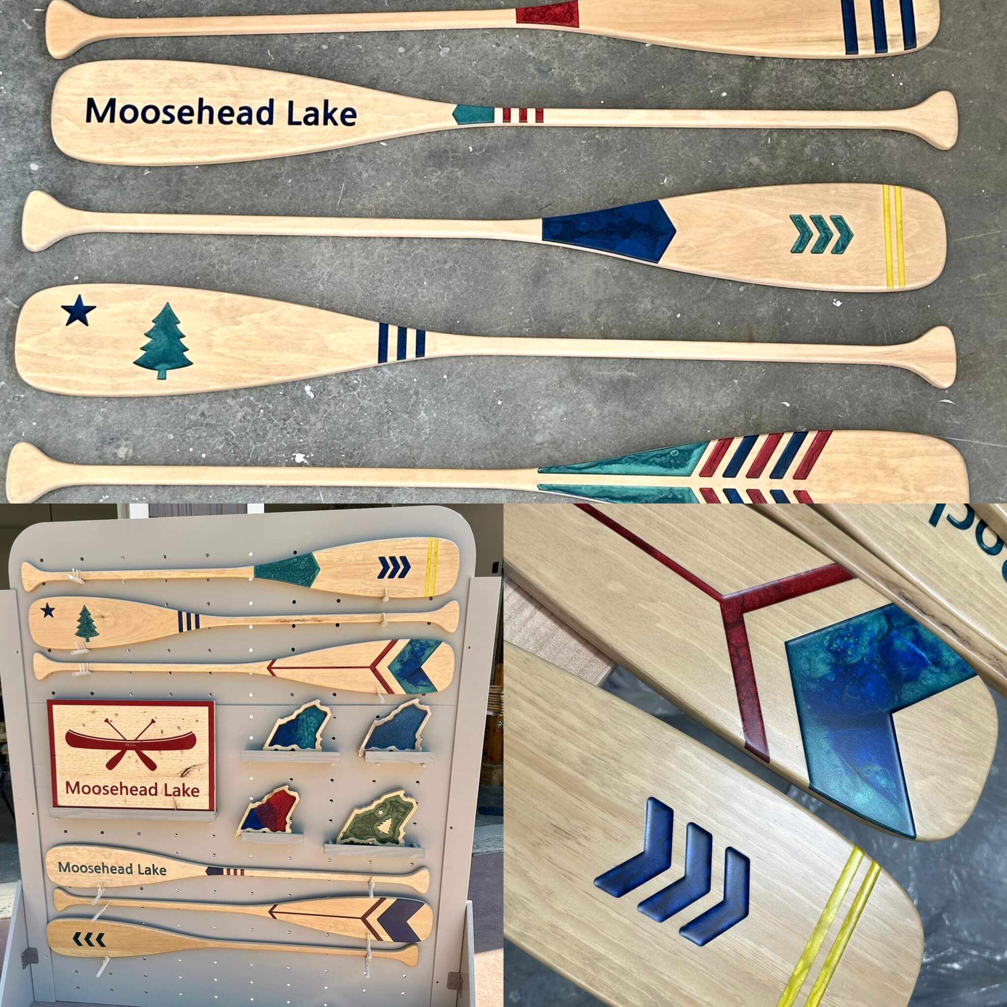I have always found paddles beautiful, and now create custom paddles that are carved with designs and lettering, then filled with a resin inlay for clients' lake houses. If you go to my website you can watch a video of the process, which incorporates a CNC machine to cut out designs and lettering, along with my own hands-on woodworking. I'm incredibly proud of the state I live in, and as a result, create other Maine decor, not only using wood with resin, but also wood with a mixed media of birch bark, metals, and other found items.