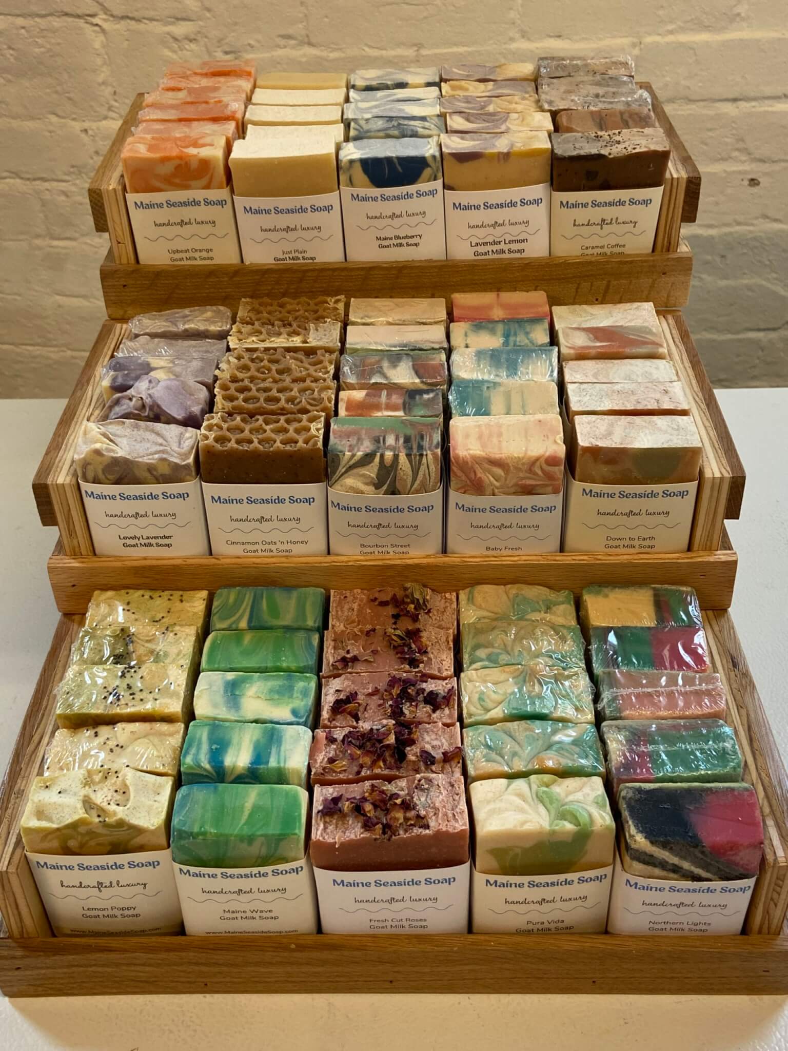 I am a former goat farmer/breeder and so I specialize in goat milk soap. I also make/sell beer soap, salt spa bars, shampoo and conditioner bars, lotion bars, CBD lotion and beard balm. I work from my home studio in Saco. I am a woman-owned small business and I enjoy making healthy, all-natural skin and hair care products for all to enjoy.
