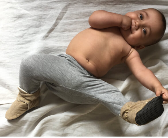 I live in Cape Elizabeth, Maine where I have a beautiful family and work from a sweet home studio beneath a 150 year old oak tree. Here, I design and manufacture baby booties and clothing, along with women’s clothing when time allows. I strive to provide quality and comfort to my customers, while also being mindful of the life giving planet we share by using organic and natural materials. My baby booties are made from a blend of linen and cotton and are lined with organic cotton fleece which is made in the USA. They are truly a customer favorite, whether someone is shopping for a brand new baby’s gift, or a parent is returning for the next size up for their own little one.