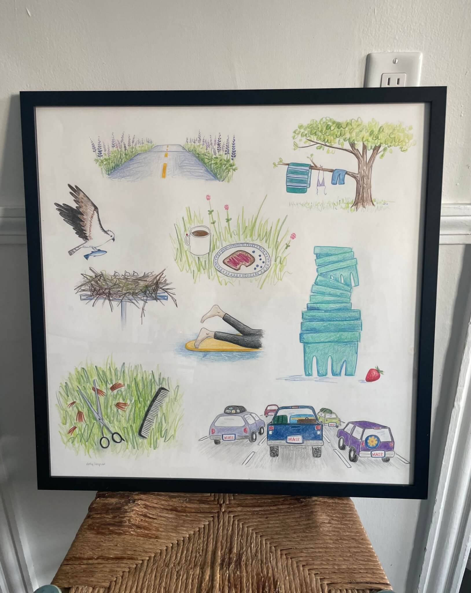 Molly is an illustrator and former farmer. She likes drawing with kids, especially tigers with her nephews, and lately likes making small hanging quilts of sweet animals. She also digitally illustrates animals in silly situations and prints them as greeting cards and larger prints. Sometimes she makes original drawings with various mediums, often based on what she sees around Maine. When she accumulates too many piles of colorful fabric scraps she uses them to make quilted potholders and coasters.